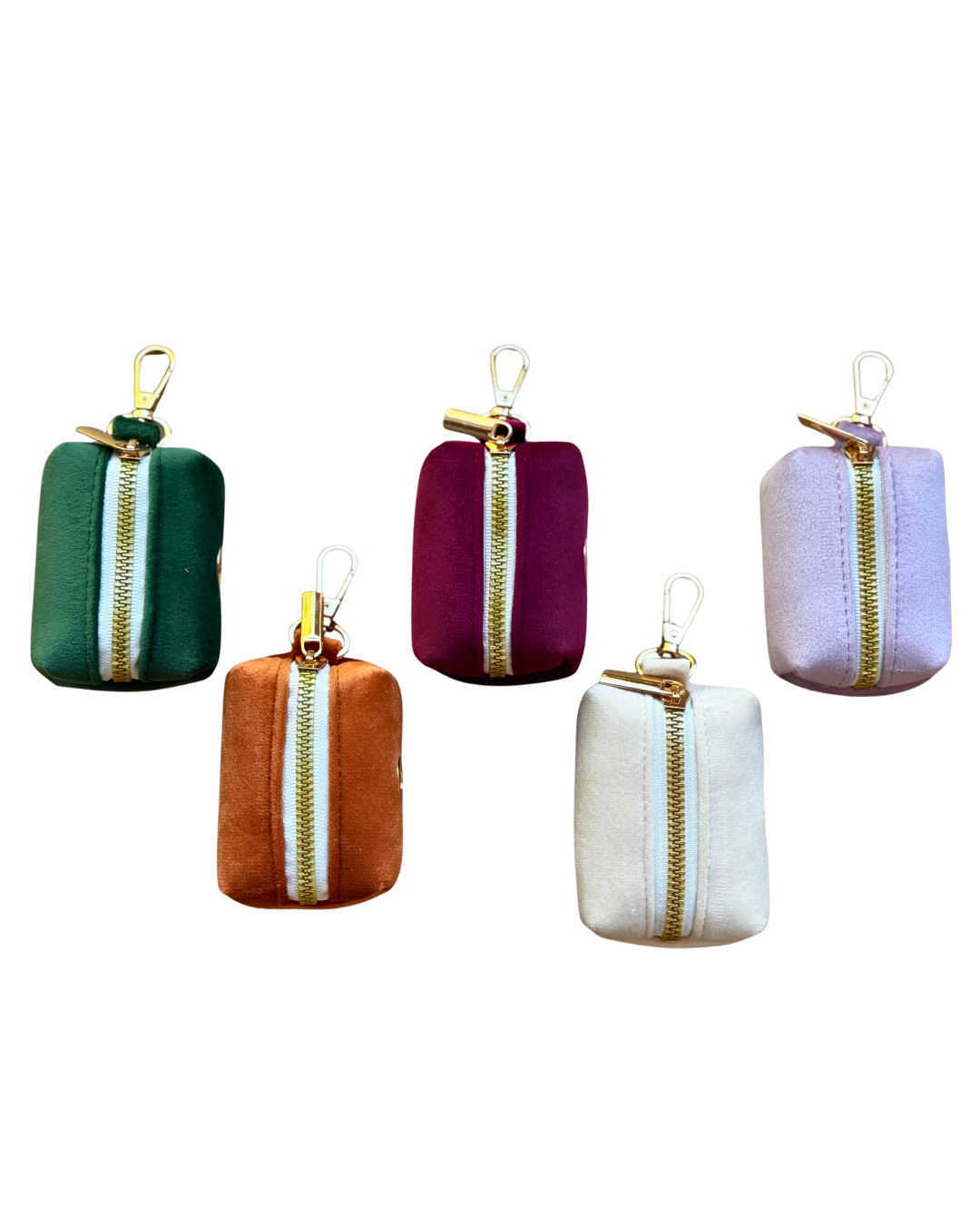 Met de velvet poepzakhouders van Kwispelkoord maak je elke wandeling niet alleen praktisch, maar ook stijlvol. De houders zijn ideaal om standaard poepzakrolletjes in mee te nemen en eenvoudig te bevestigen aan je riem, tas of broek. De poepzakhouders zijn verkrijgbaar in verschillende kleuren.
